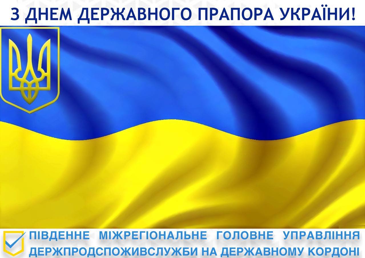 Від імені Південного міжрегіонального головного управління Державної служби України з питань безпечності харчових продуктів та захисту споживачів на державному кордоні щиросердечно вітаємо з Днем Державного Прапора України!