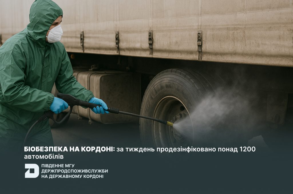 З 29 серпня по 4 вересня 2025 року фахівці Південного МГУ Держпродспоживслужби на державному кордоні продезінфікували 1228 автомобілей, що перетинали державний кордон у пунктах пропуску Одеської області.