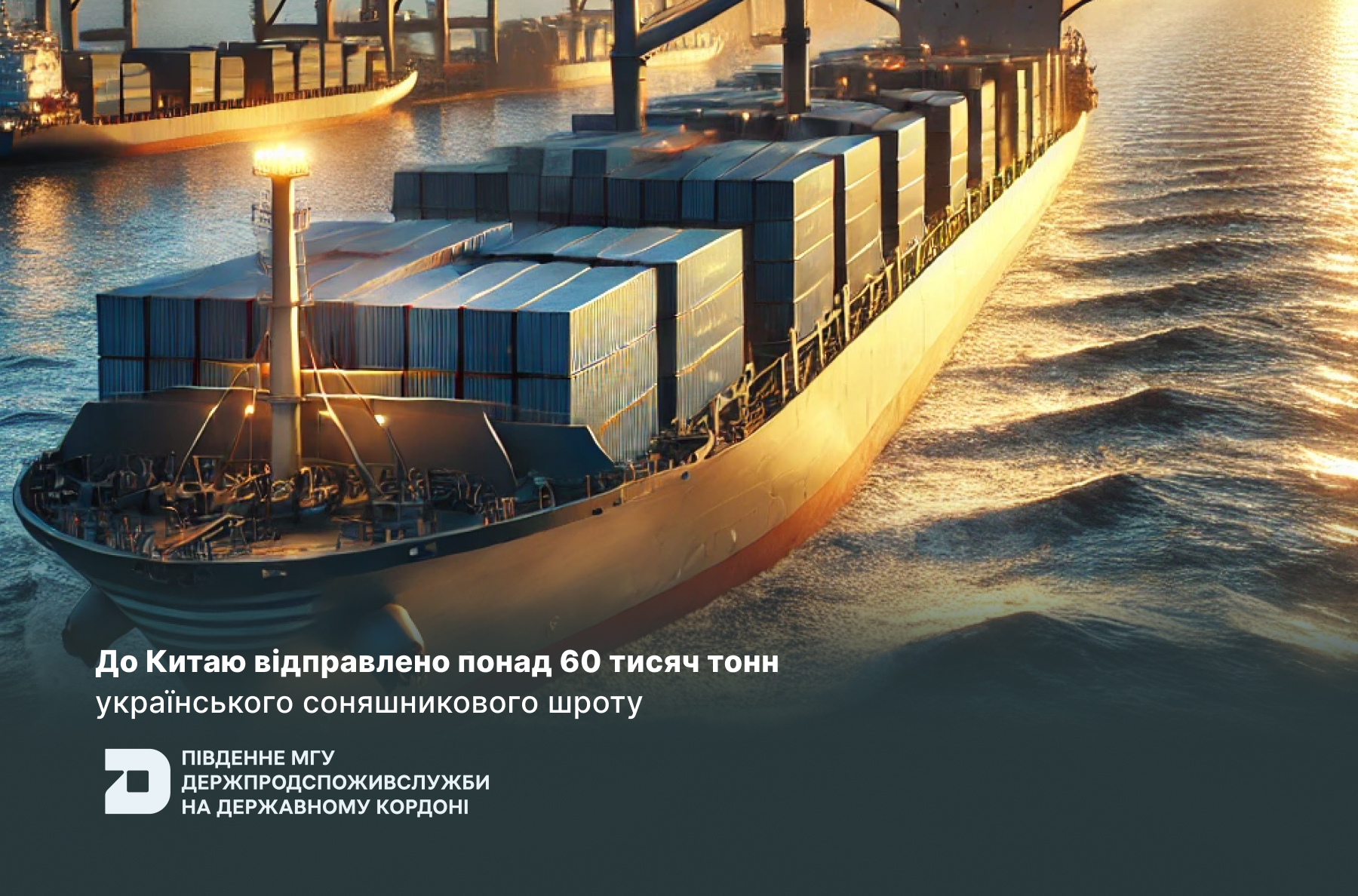 22 жовтня фахівці Південного МГУ Держпродспоживслужби на державному кордоні здійснили ветеринарно-санітарне оформлення партії вантажу загальною вагою 60 123 тонни соняшникового шроту, який морським шляхом відправлено до Китайської Народної Республіки. Китай традиційно залишається одним із найбільших імпортерів цього українського продукту.